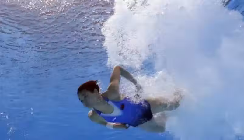 怪不得全紅嬋沒有水花,原來全被帶到下面了!