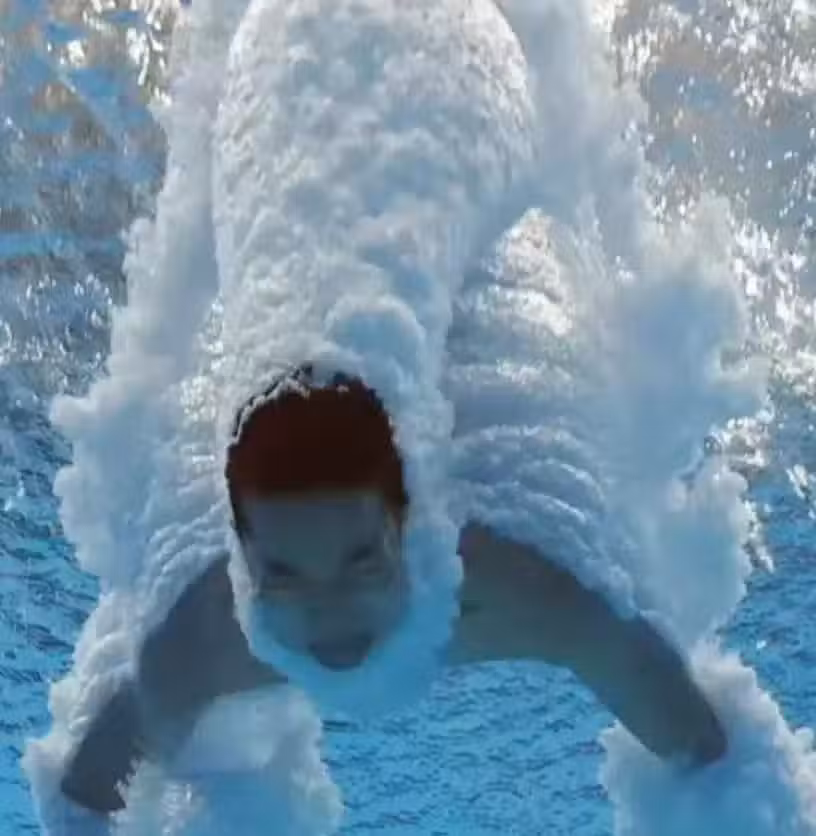 最後就是入水的瞬間了,這是跳水的壓軸戲,也是決定濺起水花大小的關鍵時刻。