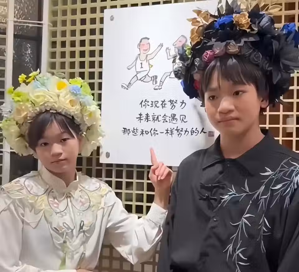 上一次全紅嬋回老家,和弟弟妹妹一起戴花簪合影,全進鵬比全紅嬋小2歲,但他卻比姐姐要高出很多。