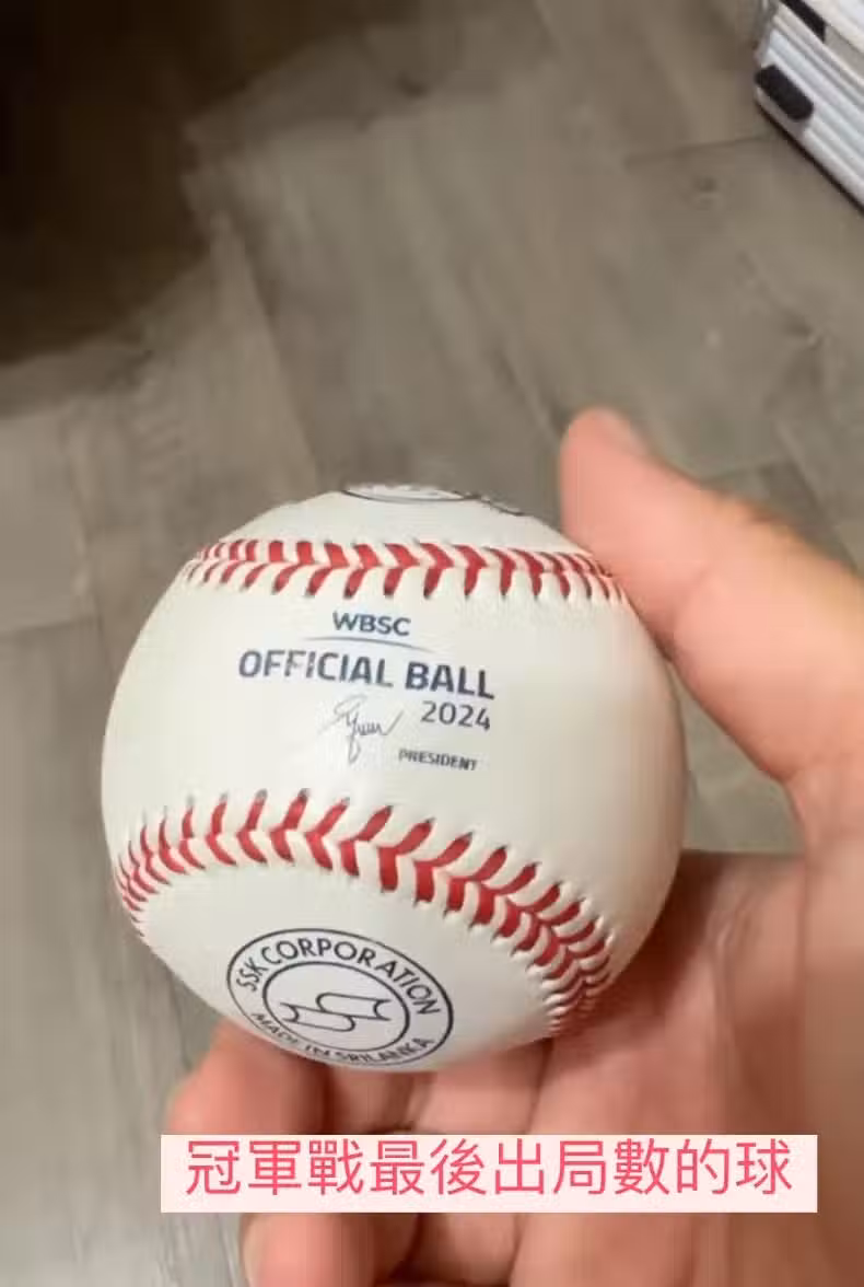 而棒協內部人員稍早則在社群上PO文,「冠軍戰最後出局數的球」,確定由曾豪駒將球交給中華棒協理事長、世界棒壘球總會執行副會長辜仲諒。