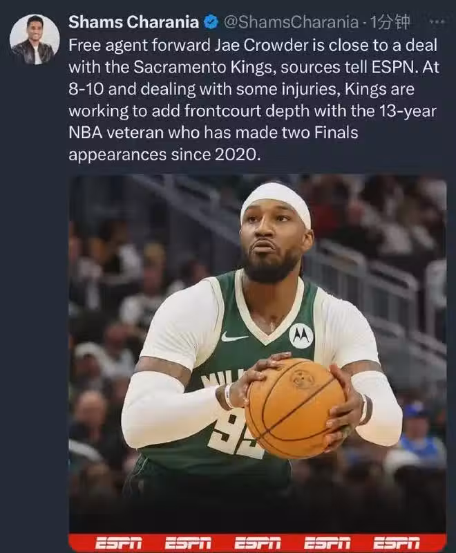 爆料王Shams:克勞德即將和國王達成一份簽約合同,最快能趕上對陣森林狼的比賽。