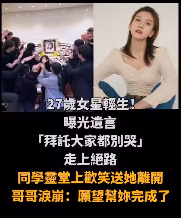 27歲女星輕生,曝光遺言「拜託大家都別哭」走上絕路 同學靈堂上「歡笑送她離開」哥哥淚崩:願望幫你完成了