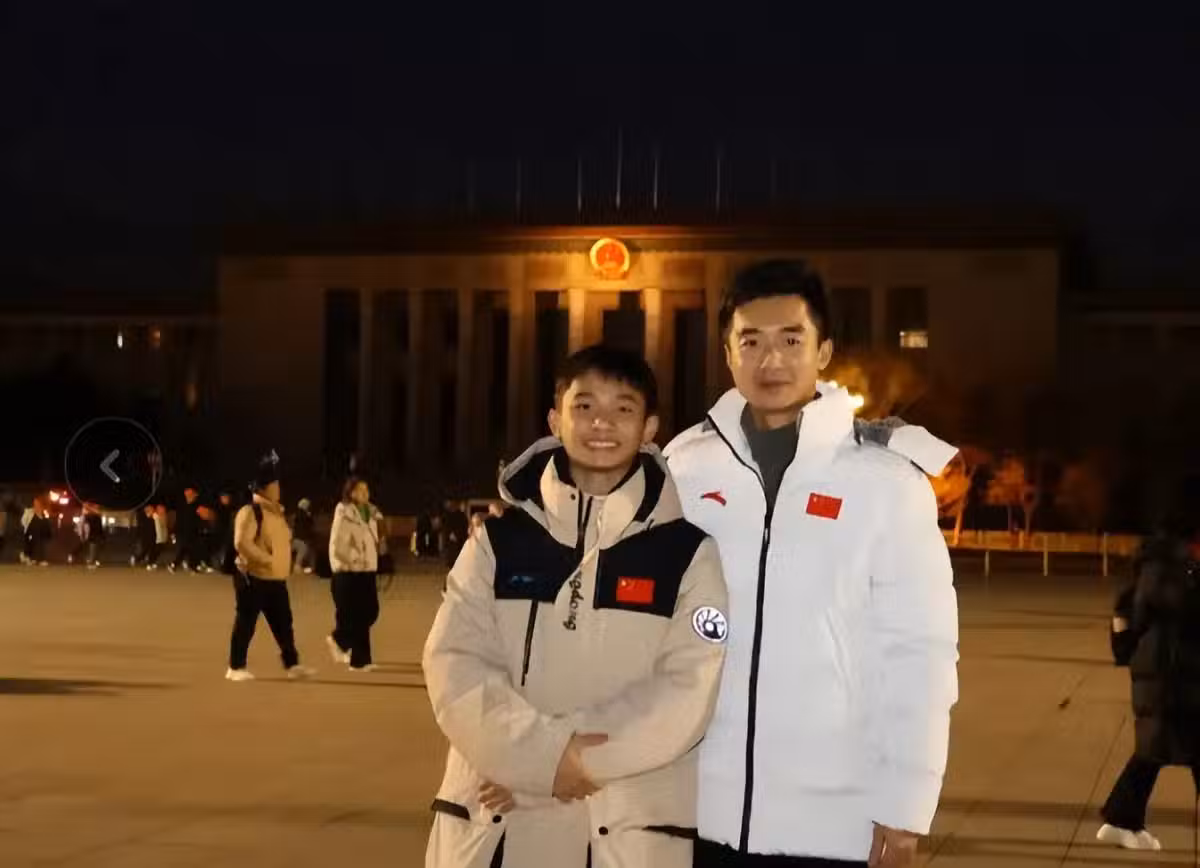 全紅嬋啟蒙教練帶徒弟進京,在天安門前曬合照,,網友:嬋寶來請客