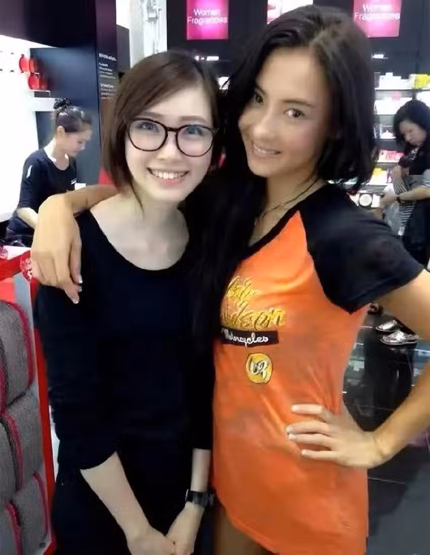 這張合照可以追溯到張柏芝出道初期,當時她與一位素人女性親密合影。