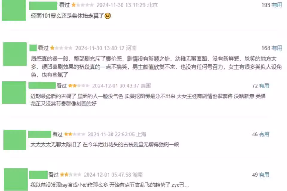 好傢夥,譚松韻《蜀錦人家》開播就差評一片,觀眾的差評理由出奇一致