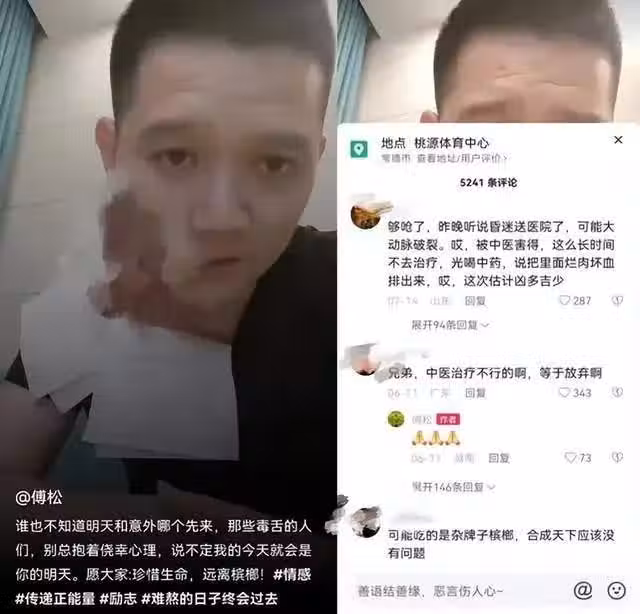 他透露,口腔癌復發三次,還向網友展示自己的傷口,整個左臉潰爛。