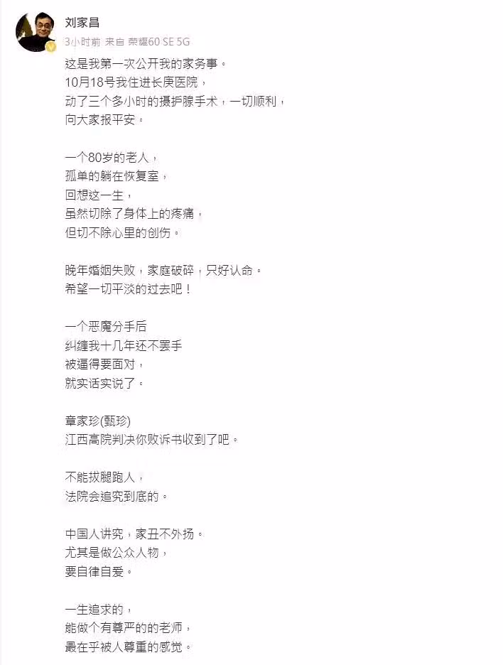 另外劉家昌離世之前也曾發文炮轟小兒子章立衡還有前妻,指責他們為了財產真的一切都不顧。