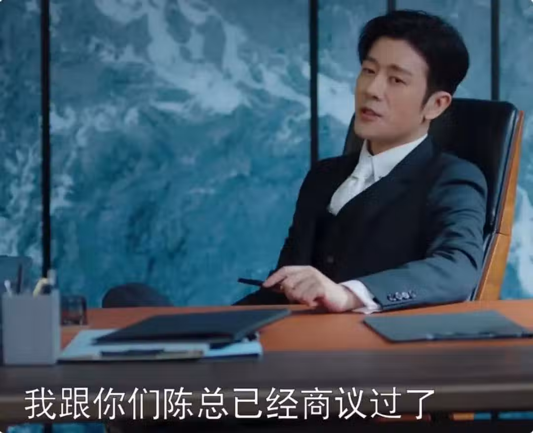 這場戲裡,林雨申一直保持著上位者的沉穩和冷靜,面對小女孩的幼稚他展現不耐煩的神情,明明語氣軟軟的,但他把手中的鋼筆輕砸在桌子上那刻,顯得更加鐵面無私了。