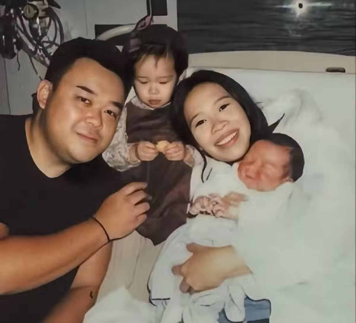 照片中,剛剛出生的兒子被抱在李敬儀的懷中。兩歲的女兒正低著頭玩著手裡的東西。時隔兩年,李敬儀也追子成功,現在是一兒一女湊足了「好」字。
