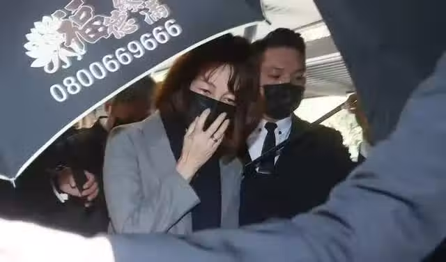 8點左右,白色棺木被推出殯儀館前往火化場地,在靈柩運上殯儀車之前,家屬為了躲避媒體的拍攝,一路都被工作人員用黑傘給遮蔽著。