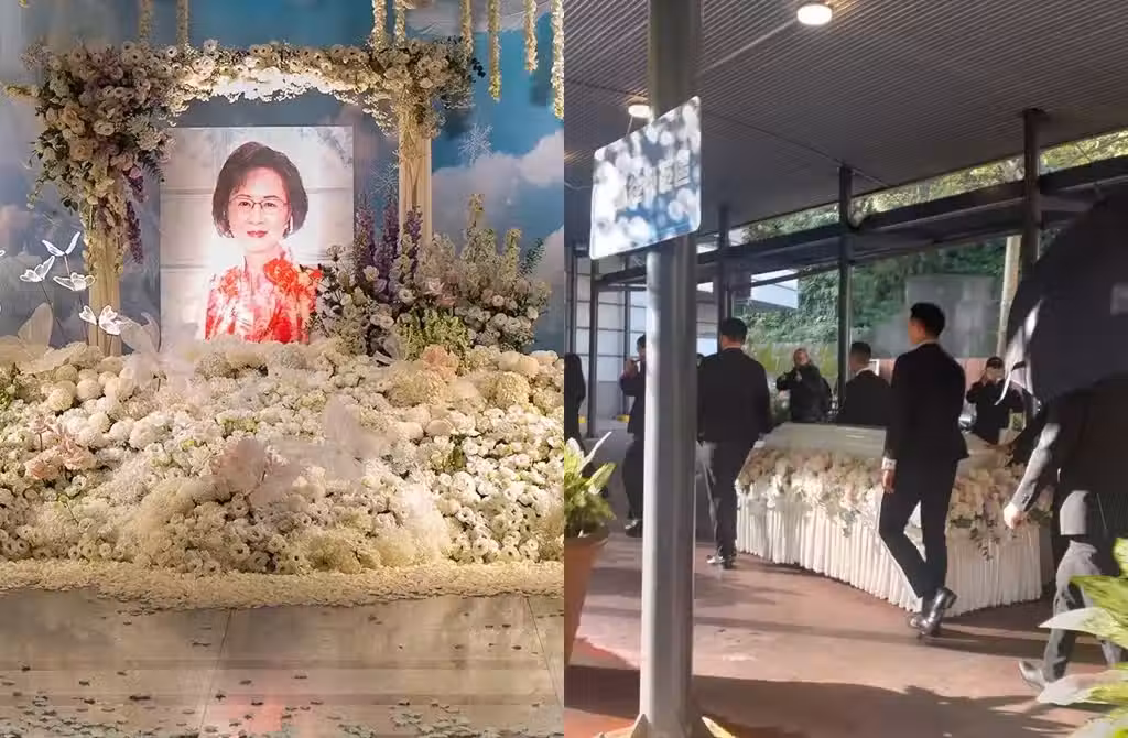 瓊瑤白色棺木被推往火葬場,兒子兒媳哭紅了眼帶兩個女兒含淚送別,平鑫濤3個子女缺席