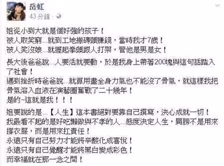 直到19歲那年,岳虹終於無法忍受沒錢的日子,下定決心要改變現況,而她也謹記爸爸教誨:「人要活就要動。」便毅然決然帶著200元進到社會闖蕩,隨後在台中找到有供吃住的工作,但為了儘快賺錢,她就是咬緊牙關苦撐,甚至有兩年都沒有回家,回首往事,岳虹的臉上仍不免泛起一抹苦澀,讓人為之心疼。