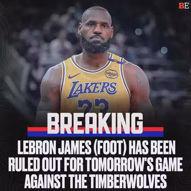 12月13日,洛杉磯湖人官方宣布:詹姆斯左腳酸痛,確定缺席明天和森林狼的比賽。另據湖人主帥透露,詹姆斯已經離開球隊,因為個人問題而請假。打完森林狼之後,湖人將在12月16日打灰熊,屆時詹姆斯可能會復出。
