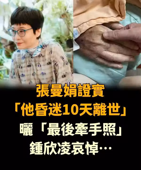 張曼娟證實「他昏迷10天離世」,曬「最後牽手照」鍾欣凌哀悼