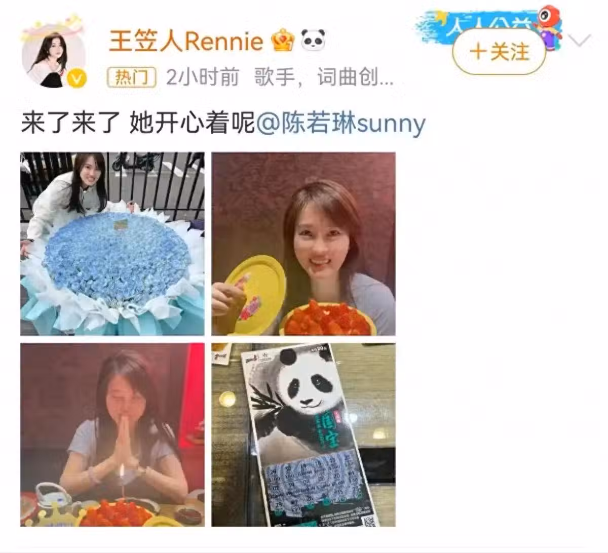 陳若琳迎來32歲生日,好友曬搪瓷盆草莓蛋糕照片,超大花束好浪漫