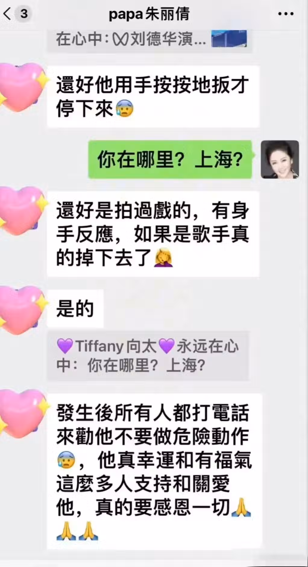 其中一場演出,華仔差點從高台滑落,嚇壞朱麗蒨。
