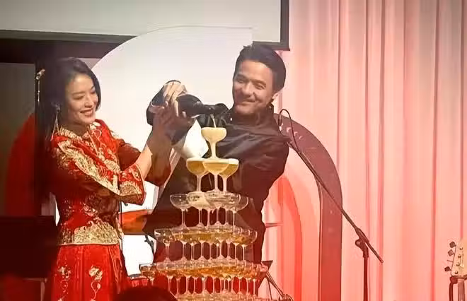 舒淇和馮德倫並沒有舉辦過婚禮,但在之前的結婚紀念日裡,夫妻倆操辦了一場類似婚禮的派對。舒淇當日穿著中式秀禾服,妝容也十分明艷動人,妥妥地新娘子既視感。而馮德倫也穿著中國風的look,夫妻倆時而甜蜜熱吻,時而一起倒酒,每一幀都充滿幸福高糖,甜翻眾人。