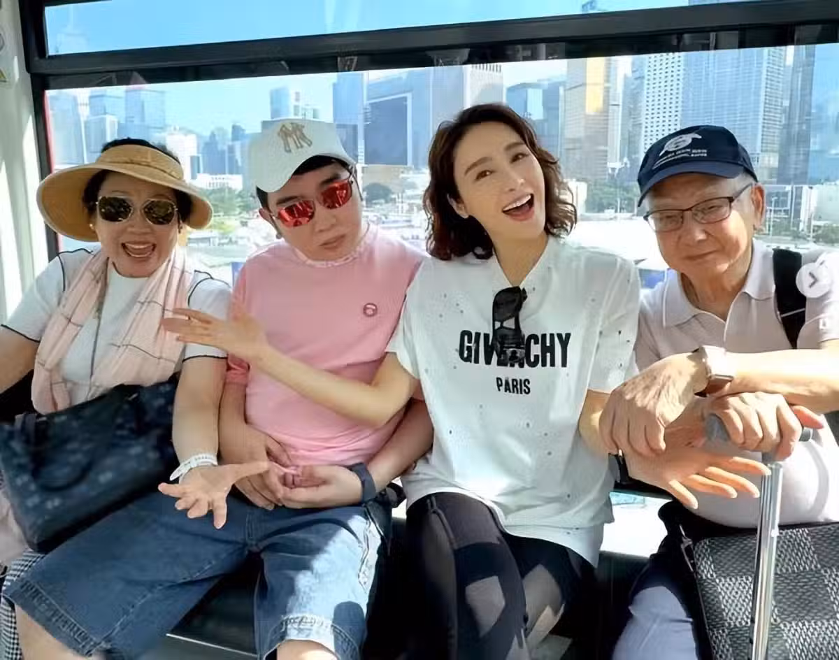 黎姿和殘疾弟弟為父親慶生,49歲黎嬰臉露燦笑,戴墨鏡全家大合影