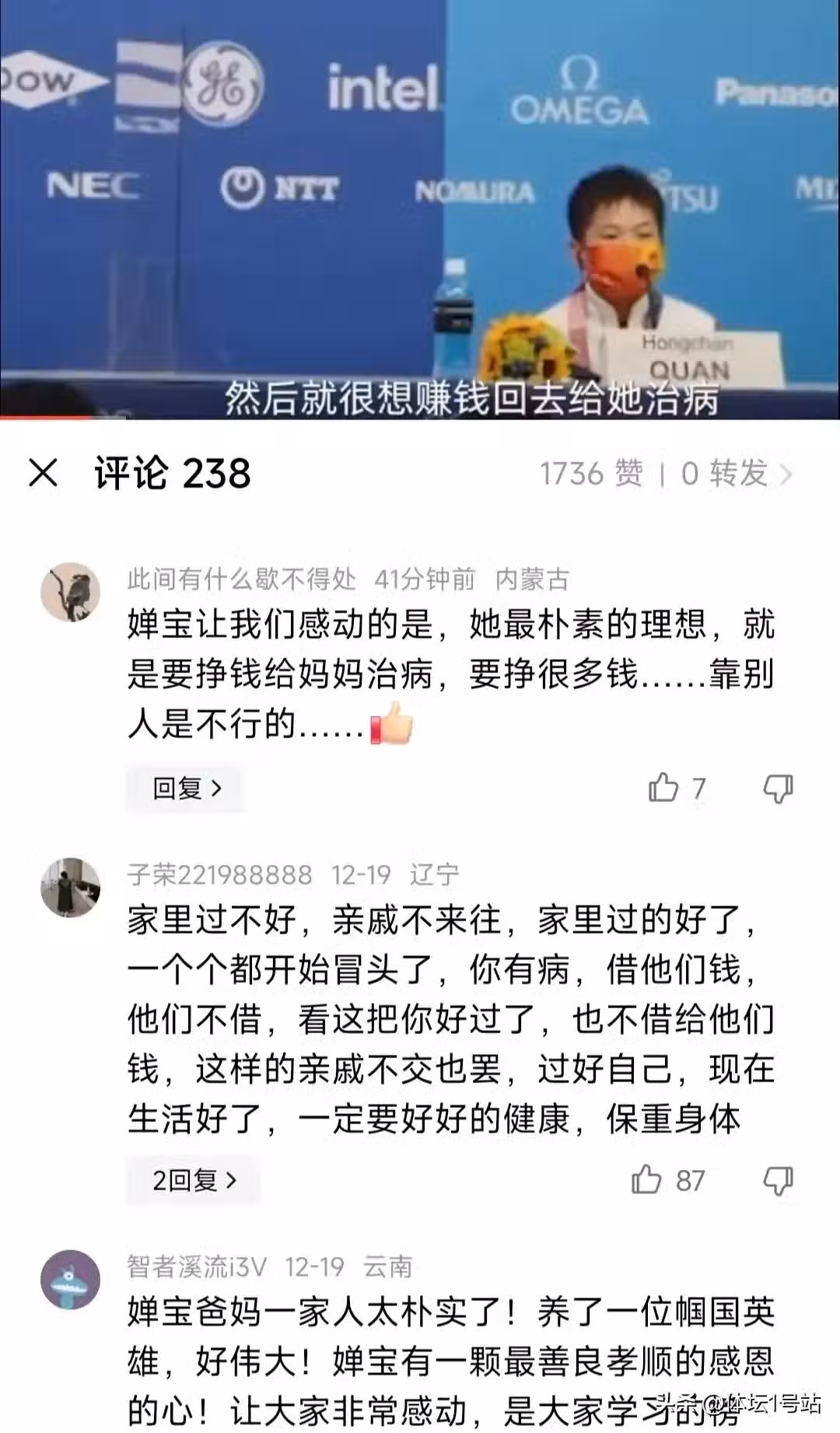 「現在才知道全紅嬋媽媽受的傷很重,以前只知道出車禍,不知道這麼重,那些親戚真的好狠心,一毛不拔啊,人家出名了又來了。」