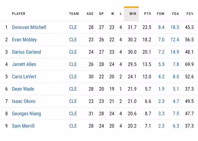 騎士本賽季進攻效率聯盟第一,防守效率聯盟第七,凈效率聯盟第二(第一是雷霆),騎士攻守均衡,所以他們能在核心球員出戰時間不多的情況下戰績高居聯盟第一。這樣打下去,這支騎士有希望打破詹姆斯創造的常規賽66勝隊史紀錄。