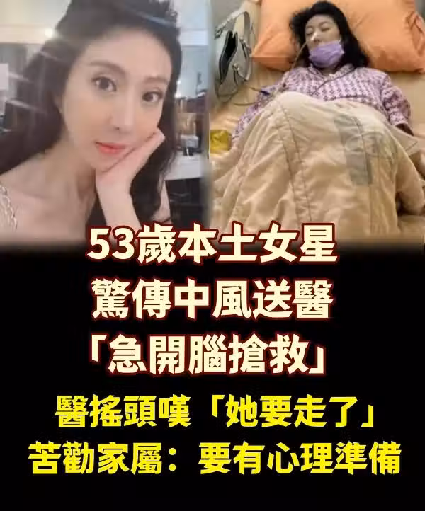 53歲本土女星驚傳中風送醫!「急開腦搶救」 醫搖頭嘆「她要走了」苦勸家屬:要有心理準備~