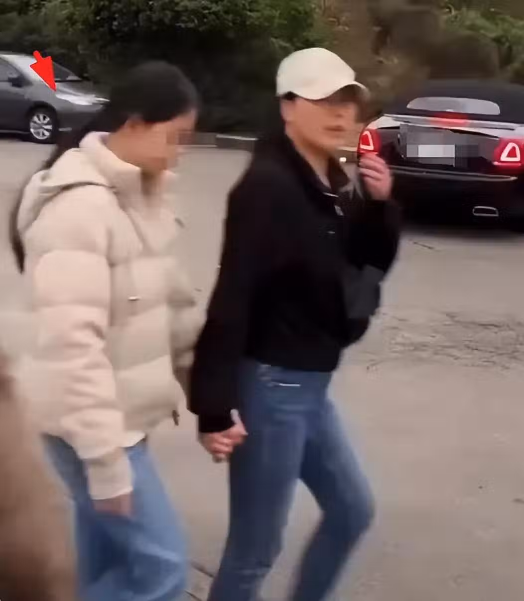 保姆小楊阿姨牽著玥兒的手,玥兒打扮很樸實,穿著牛仔褲搭配一件羽絨外套,扎著長辮子身型有幾分像媽媽大S小時候。
