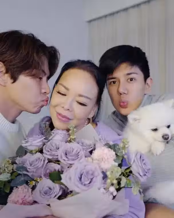 TVB女神收割機與同母異父弟弟為媽媽慶生,一家三口獲贊高顏值!