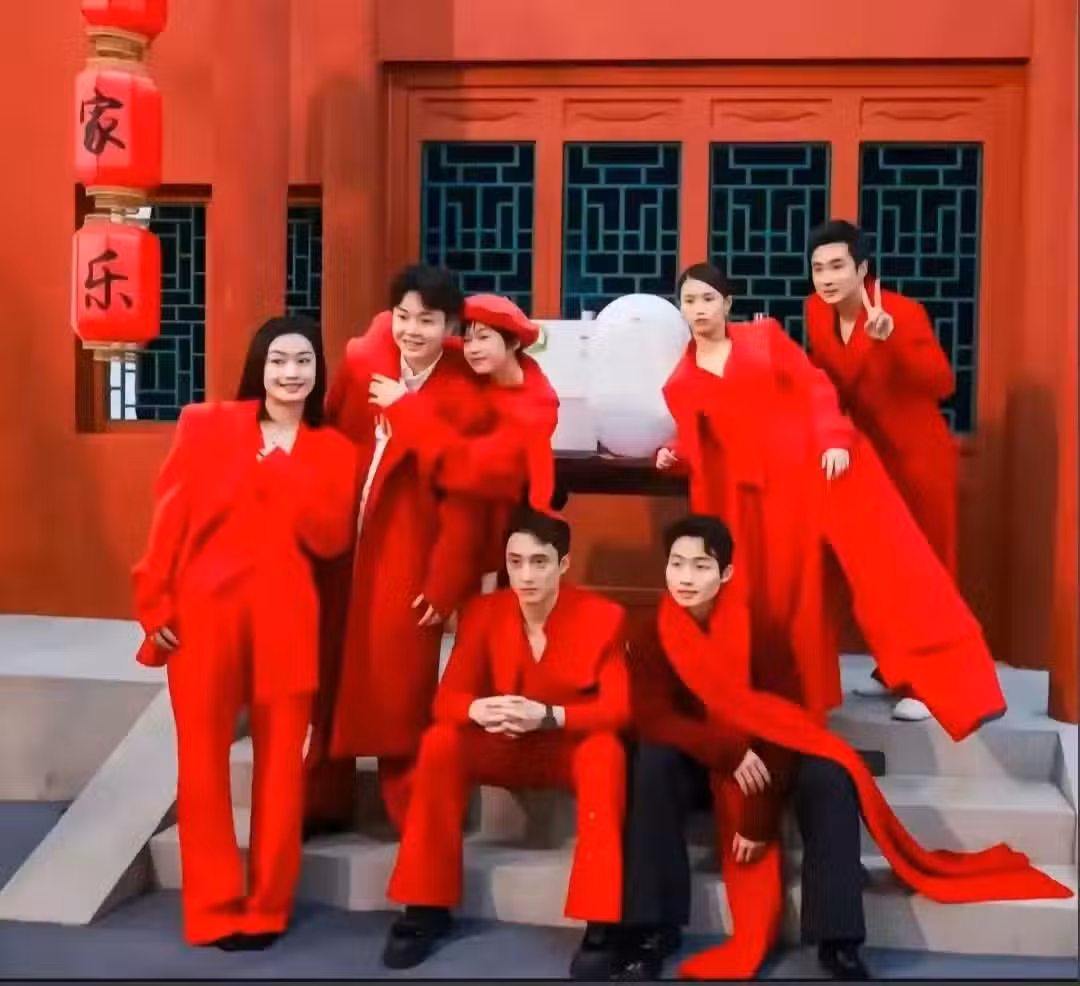 一家人整整齊齊的都穿紅色衣服,全紅嬋還戴了紅色貝雷帽,特別俏皮可愛。