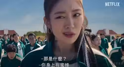 ▲編號196號的姜敏兒在玩123木頭人時,飛來一隻蜜蜂停在脖子上讓她尖叫亂跳,最終遭射殺淘汰出局。(圖/YT@Netflix)