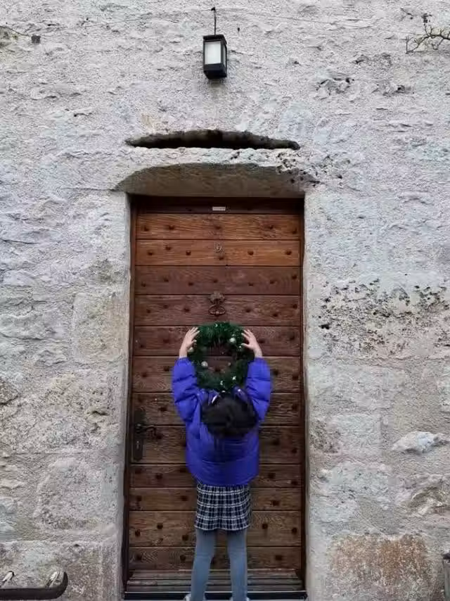 看得出陳法拉老公的老家是一座古堡,氣勢恢宏,相信也是價值不菲,陳法拉的女兒還在古堡的門上掛了一個聖誕的花環,頗有節日的氛圍。