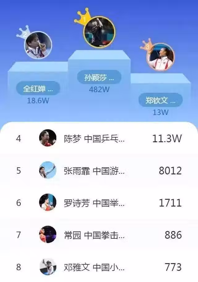 全紅嬋第二,與第一名差距463萬,這是全紅嬋「輸」的好慘的一次~