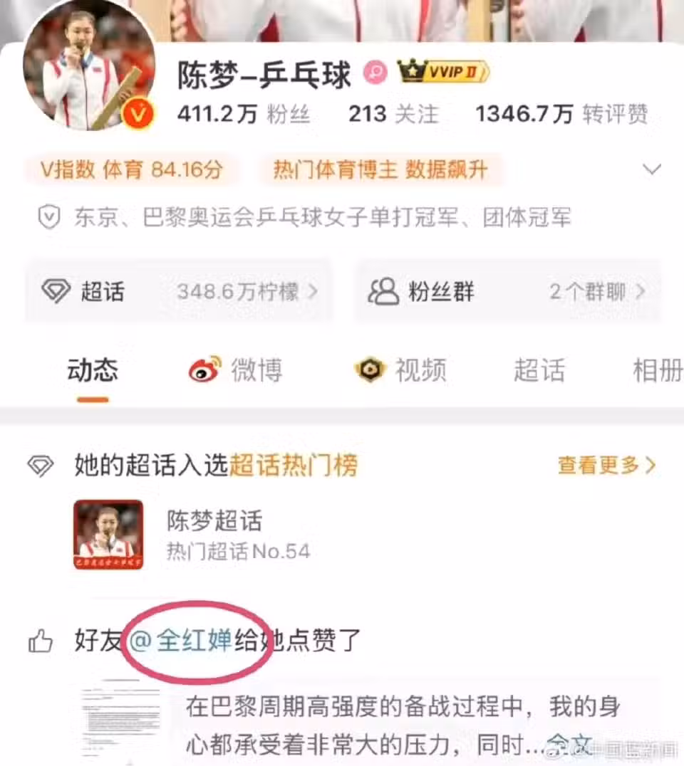 全紅嬋點贊陳夢!潘展樂點贊樊振東 網友:奧運冠軍之間的神仙友情