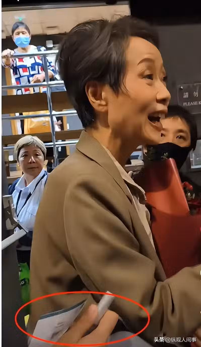 給身前的粉絲簽完名字後,葉童似乎還想接過錄製視頻的網友的本子,可惜被隨行的工作人員阻止,一隻手直接橫插過來,攥著葉童的手腕推著她轉身。