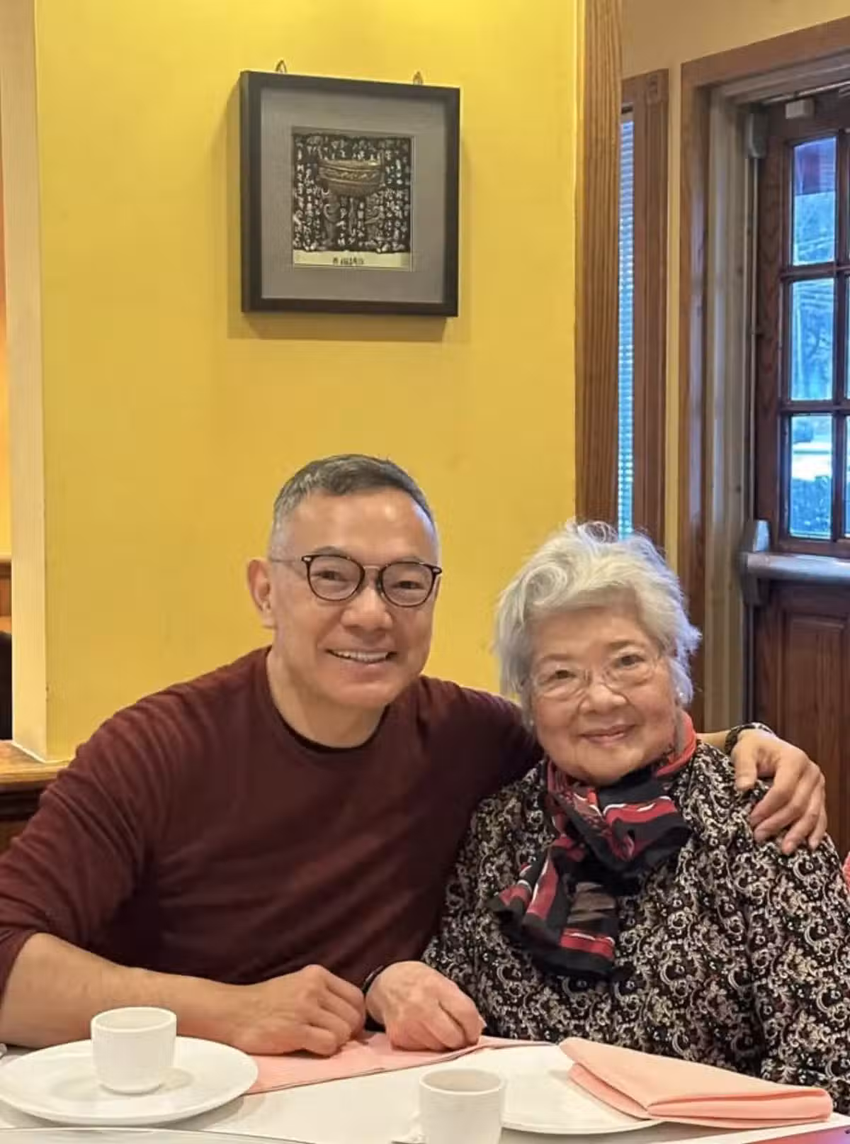 白韻琴丈夫赴美探親,80多歲母親出鏡優雅慈祥,80歲白韻琴沒露臉