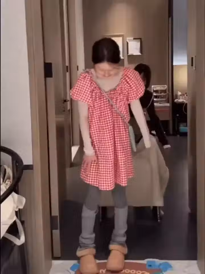 也有患病後努力學走路的照片,費勁地挪著小步子。