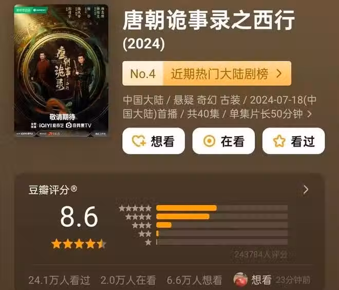 2024播放最高十部國產劇,趙麗穎、劉亦菲一部上榜,第十僅播33天