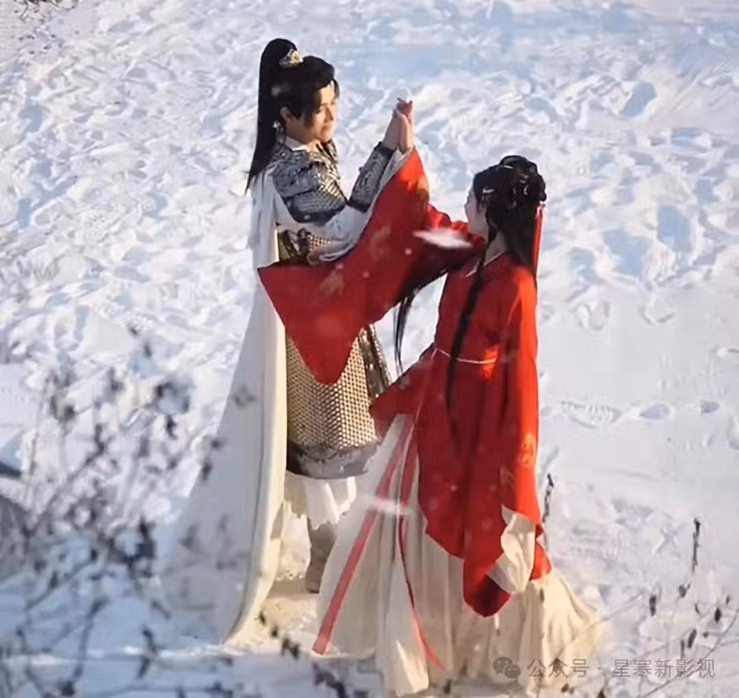 《慕胥辭》再引熱議,迪麗熱巴紅衣絕美,和陳飛宇雪地共舞太甜了