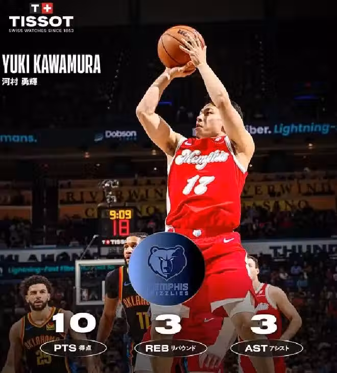 河村勇輝的NBA生涯正賽總得分已來到24分,追平周琦NBA生涯總得分,同時是繼八村塁和渡邊雄太之後,第三位在NBA單場得分上雙的日本球員。