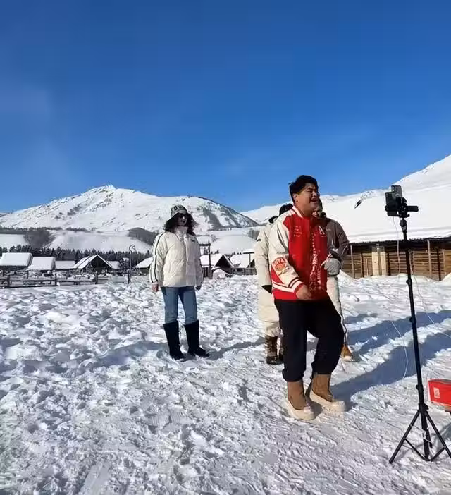 他的雙手凍得通紅,但他依舊堅持在寒冷的新疆直播,做著這些別人看不起的工作,只是為了讓家人過上更好的日子。