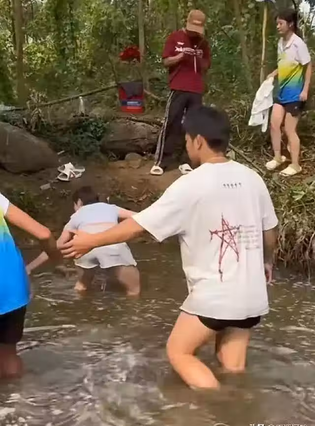 全紅嬋玩瘋了,下河抓魚改善伙食,帽子叔叔全程跟著很緊張