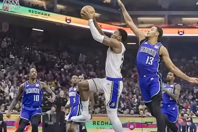 本季,八村塁場均9.3次出手中占比27.9%的出手來自對手距離6英尺以上的空位下。值得一提的是,27.9%的數值是NBA生涯以來新高。也就是說,有詹眉、里夫斯等牽制下八村塁確實獲得了較多的舒服出手機會。奈何投籃率只有46.4%。作為對比,上季數值56.6%。