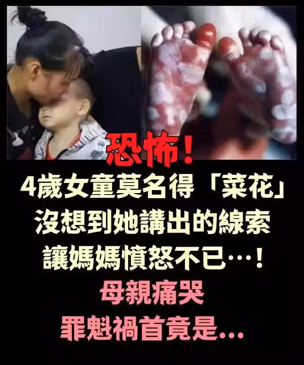 恐怖!4歲女童莫名得「菜花」沒想到她講出的線索讓媽媽憤怒不已 母親痛哭,罪魁禍首竟是