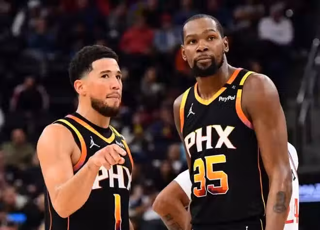 球場之外,布克就更讓人失望了。當杜蘭特表達一些沮喪情緒時,布克也經常傳遞負能量,不滿球隊防守,不滿一些隊友表現,直言全隊缺乏侵略性。包括一些關鍵時刻需要他站出來時,他消失了,往往是杜蘭特挺身而出!布克本賽季打強隊什麼表現?打灰熊20中4,打魔術14中5,打雷霆10中2,打76人甚至都能18中3,低效場次比比皆是,太依賴三分投射。那問題來了,為什麼必須要走的是比爾?比爾本賽季場均18分4籃板3助攻,但比爾的兩項命中率49%+39%是和杜蘭特一個級別,把布克的投籃數給比爾,比爾數據會更好。