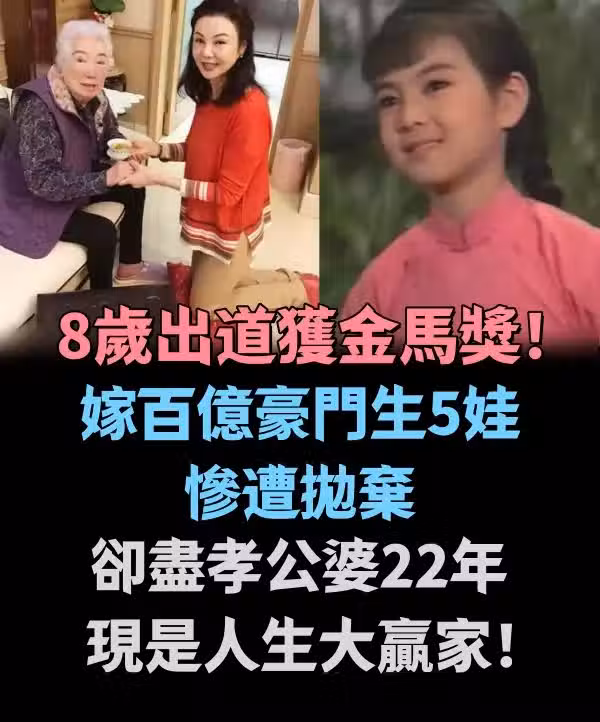 8歲出道便斬獲金馬獎,婚後嫁入百億豪門並育有5個孩子,卻不幸遭遇丈夫拋棄