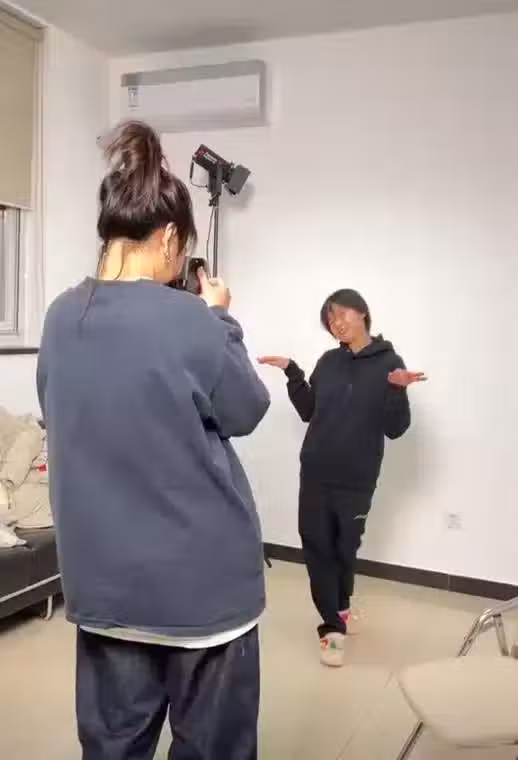 她穿著衛衣,戴著帽子,這打扮,一看就是剛訓練完。