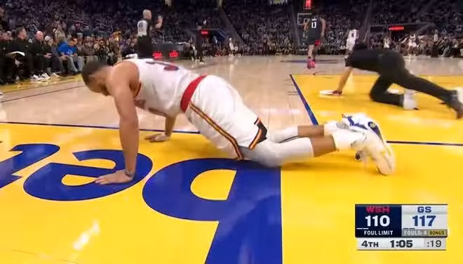 勇士重創!庫里倒在最後1分鐘,被普爾壓小腿,退場細節讓人擔憂