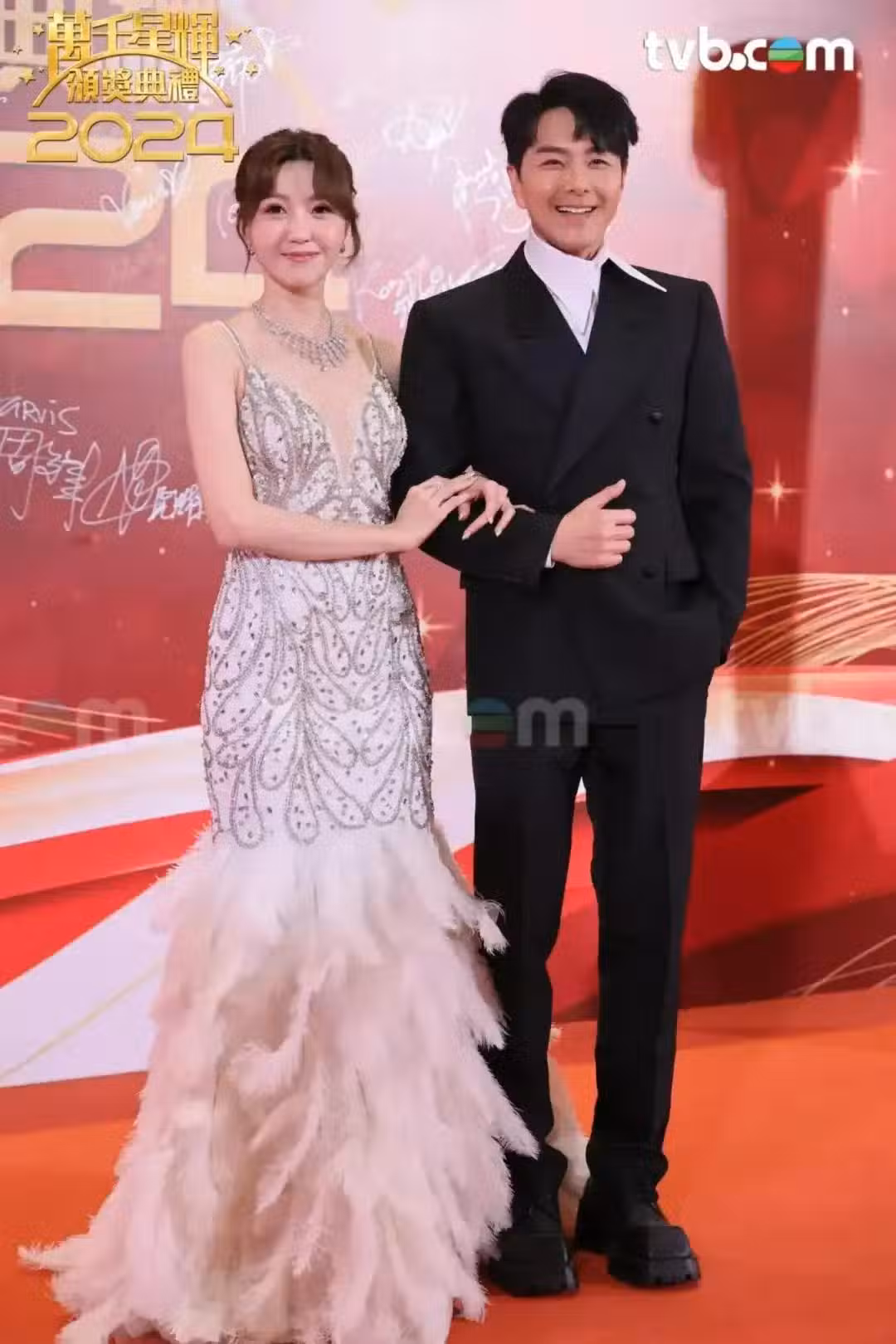 吳若希和蕭正楠的穿搭也有新婚夫妻的既視感,但他們的禮服更有質感,放在TVB的豪門劇里也不違和。-----------