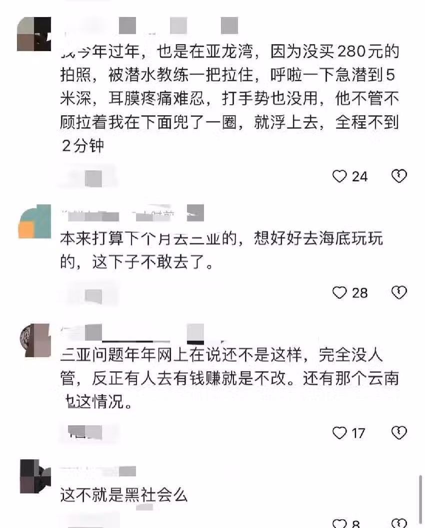 女子在三亞潛水遭教練「取下氧氣罩」表示加錢拍照「評論區」紛紛表示陷入類似困境