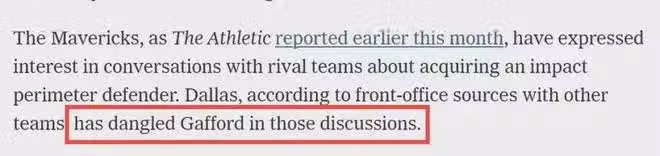 這是因為獨行俠希望用加福德換回一名具有影響力的側翼球員,以此增強球隊的外線防守。