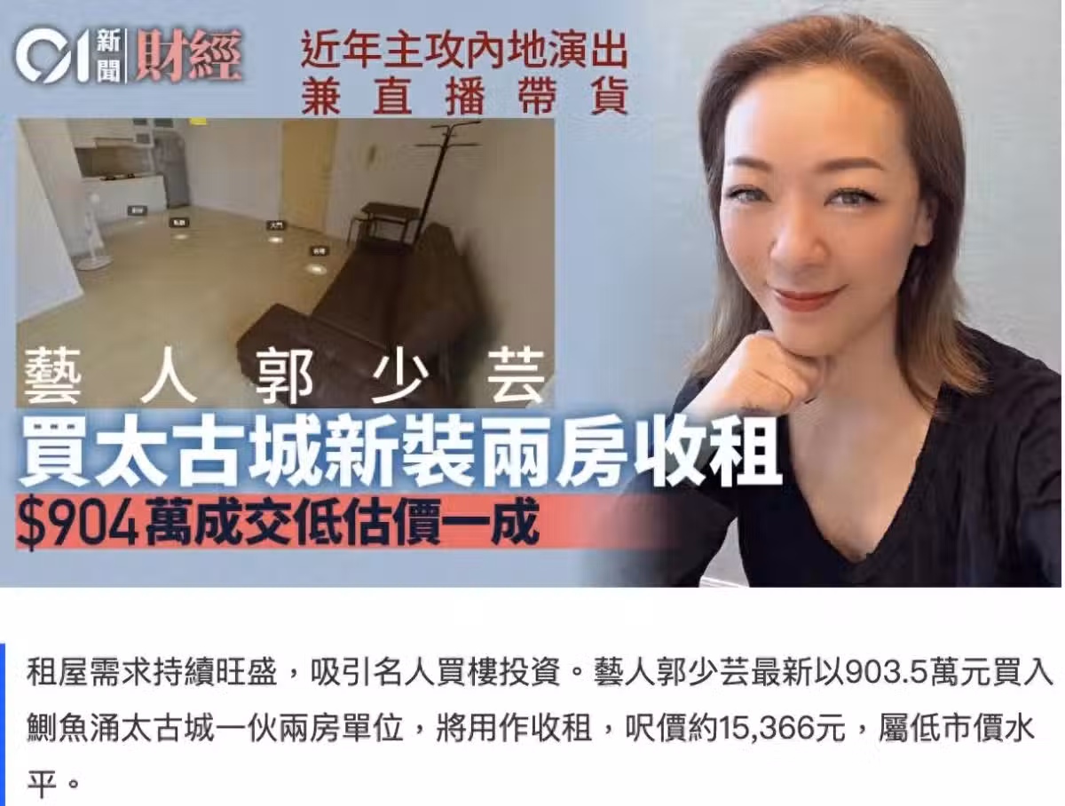 郭少芸北上發展成功回港買房,54平米花900萬,在內地已有兩套房